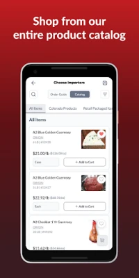 Explore our extensive product catalog with item photos and detailed attributes like nutritional info.